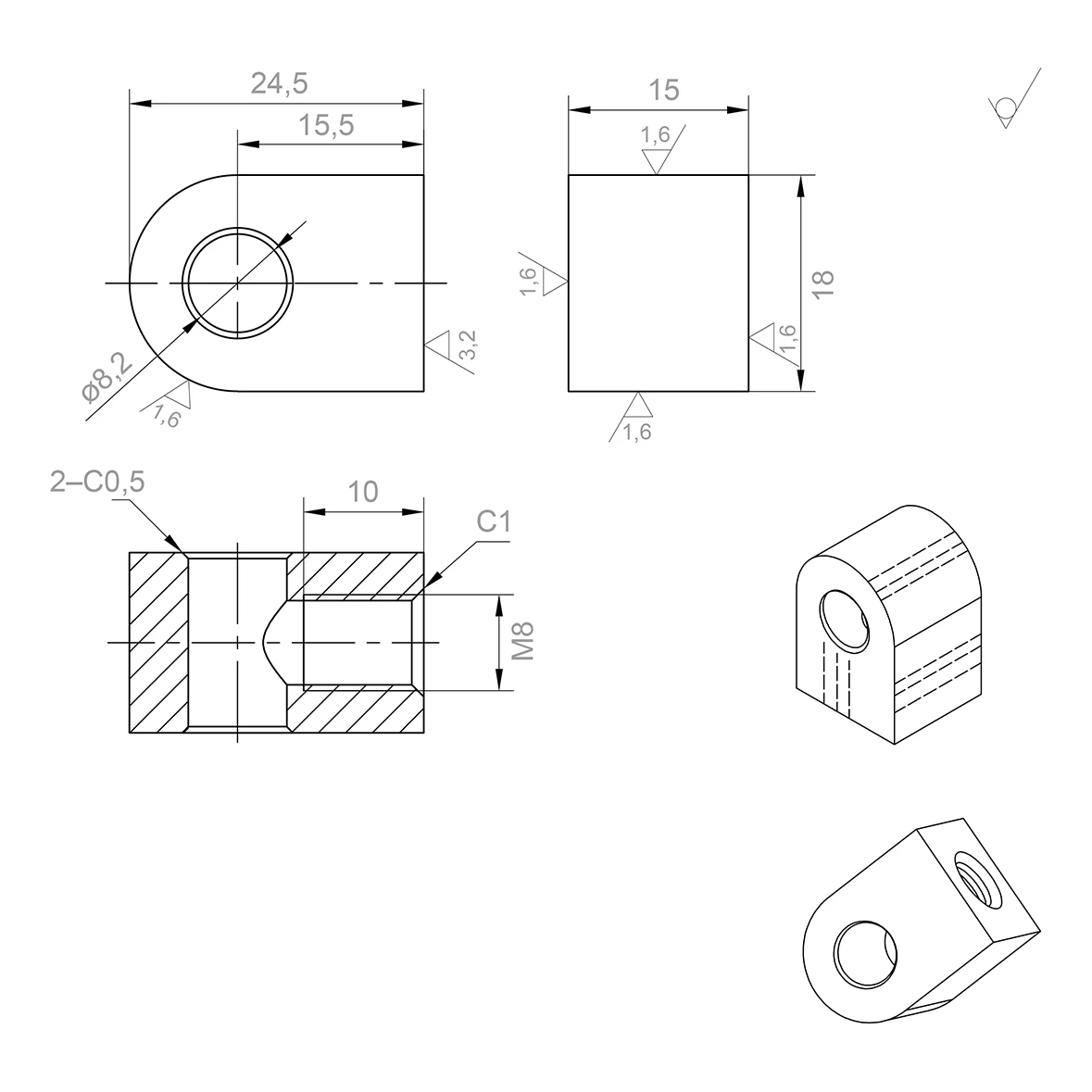 - Afschuiningen: 2×C0,5 en C1