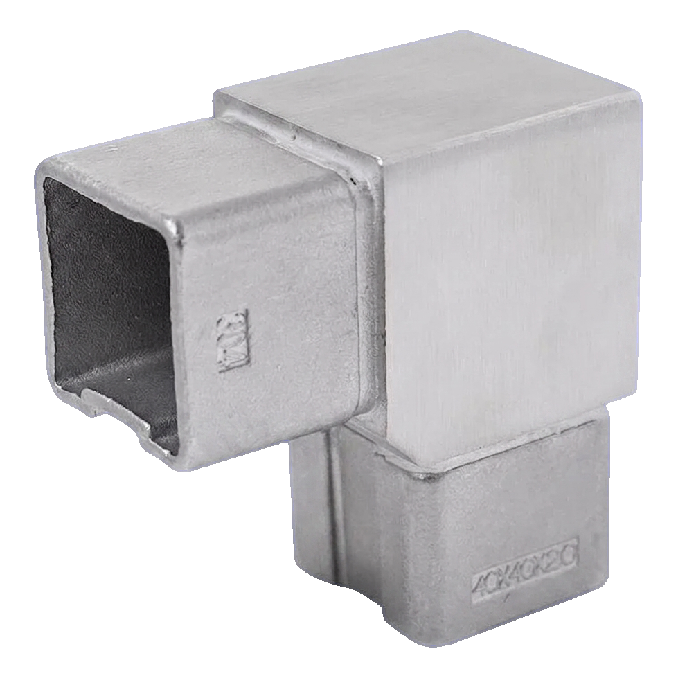 90° hoekstuk voor balustradeprofiel 40x40 mm – roestvrijstaal AISI304, satijn