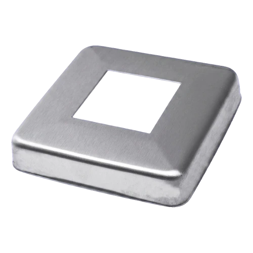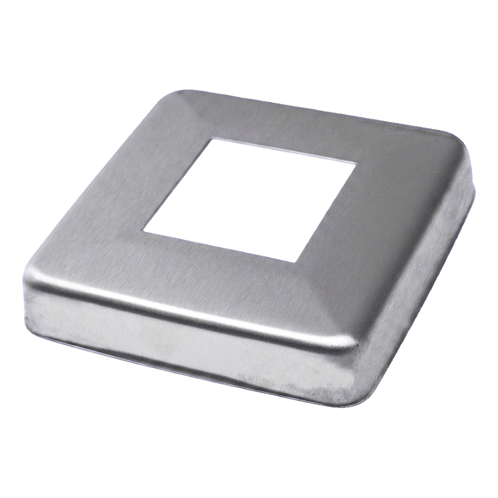 Afdek rozet voor vierkant profiel 40×40 mm — esthetisch afrondingselement bestemd voor het afdekken van montagegaten in roestvrijstalen balustrades. Dankzij de gepolijste afwerking van AISI 304 staal geeft het de constructie een professionele, consistente uitstraling en beschermt de doorgang van de stijl door de basis of vloer.