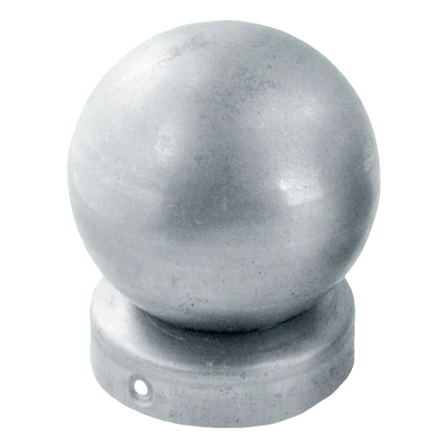 De afdekdop beschermt de binnenkant van de paal tegen het binnendringen van regenwater, sneeuw en verontreinigingen, die corrosie versnellen. De decoratieve bol geeft het hekwerk een representatief, afgewerkt karakter. Speciale montagegaten in de basis maken snelle bevestiging met schroeven of klinken mogelijk aan metalen en houten palen — montage vereist geen lassen of gespecialiseerd gereedschap.