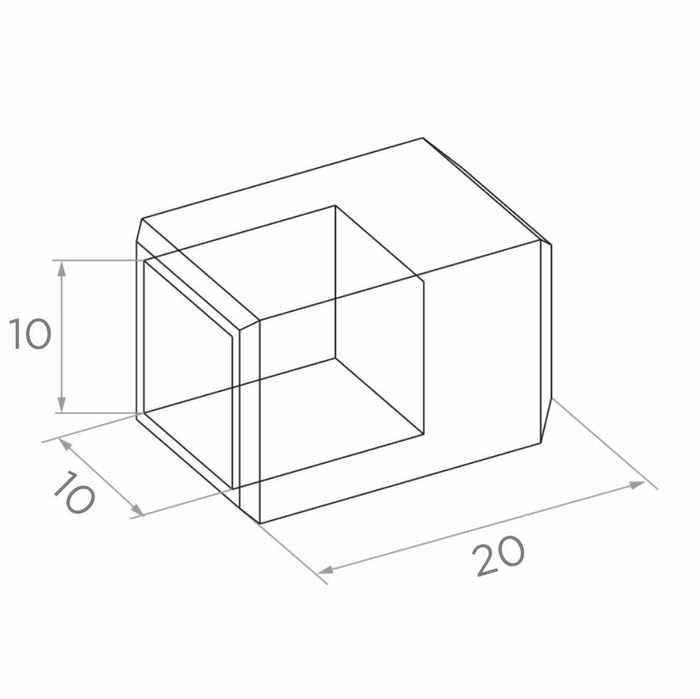 - Interne doorsnede (opening voor stang): 10×10 mm