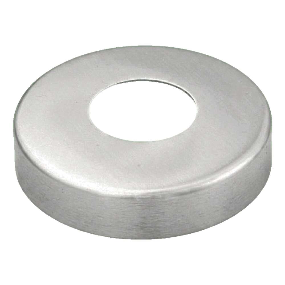 Ronde afdekrozet van roestvrijstaal AISI 304 met satijnen afwerking — esthetisch afwerkelement bestemd voor het afdekken van montagegaten rondom een balustradebuis met diameter 42,4 mm. Dankzij de precieze pasvorm en hoogwaardige materialen geeft de afdekking de balustrade een professionele, nette uitstraling door zichtbare doorvoeren van de buis door vloer, plafond of bordes te elimineren.