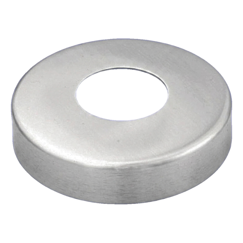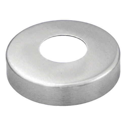 Ronde afdekrozet bestemd voor het afdekken van montagegaten rond buizen met diameter Ø48,3 mm in roestvrijstalen balustrades. Geeft de constructie een esthetische, afgewerkte uitstraling — elimineert zichtbare spleten en onvolkomenheden op plaatsen waar de buis door de vloer, plafond of dragende element van de balustrade gaat.