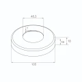 De compacte vorm met buitendiameter 105 mm en hoogte van slechts 18 mm zorgt ervoor dat de rozet discreet opgaat in de constructie, zonder visueel te domineren. Wanddikte 1 mm garandeert voldoende stijfheid bij geringe massa — het element weegt slechts 0,09 kg, wat de montage vergemakkelijkt en de constructie niet belast.