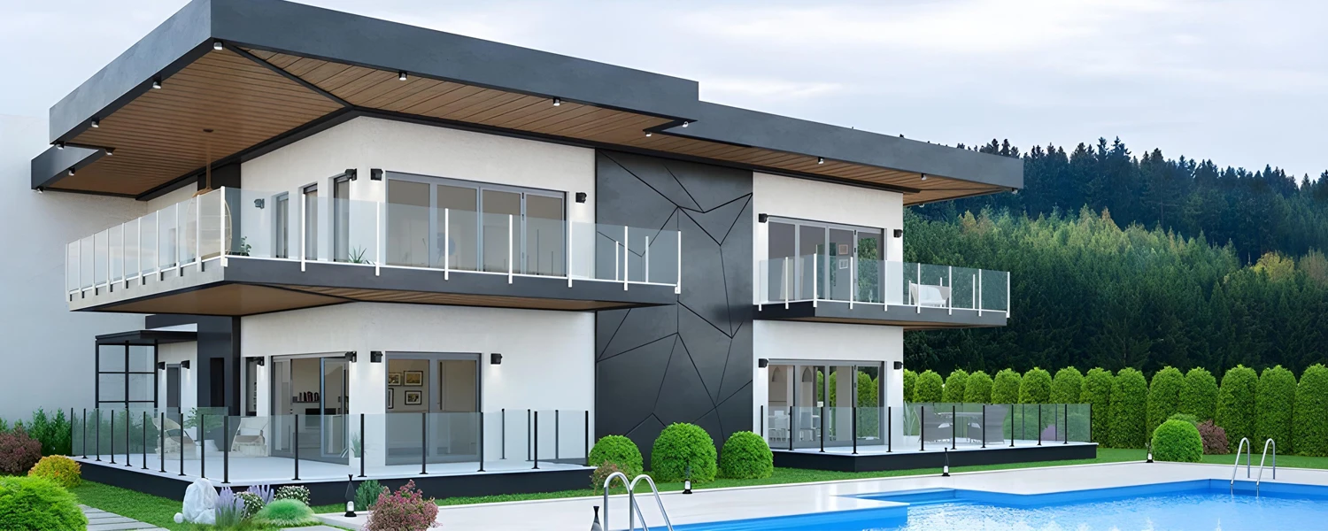 Kozza KR7300 is een aluminium zijpaal voor glazen balustrades, ontworpen voor montage aan de voorkant van balkonplaten of trapwangen. Door de zijmontage blijft het balkon- of terrasoppervlak vrij van staande elementen, wat de rand van de vloer opruimt en volledige vrijheid geeft bij de inrichting van de gebruiksruimte. Het compacte profiel van 45×45 mm combineert hoge stijfheid met een laag eigengewicht, en de donkergrijze poedercoating in kleur RAL 7021 geeft de balustrade een moderne, minimalistische uitstraling.