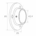 Element vervaardigd uit roestvrij staal AISI 304 met satijnen afwerking, wat hoge corrosiebestendigheid en een esthetische, matte uitstraling garandeert die perfect past bij moderne balustrades van roestvrij staal. De montageplaat met diameter 85 mm heeft 3 montagegaten met diameter 6,5 mm, die stabiele en gelijkmatige bevestiging aan de ondergrond garanderen. Bovendien zorgt de ingebouwde klemschroef (zogenaamde stelschroef) voor veilige vergrendeling van de buis in de huls.