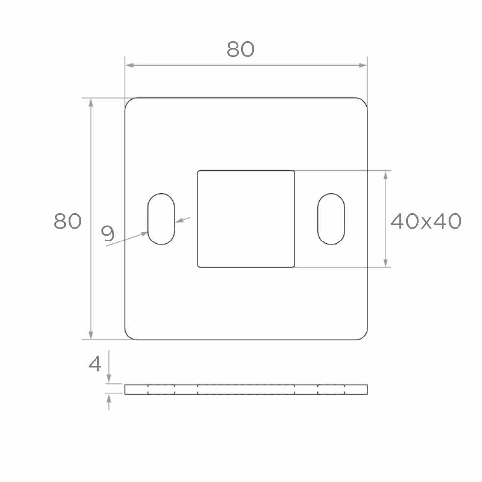 De compacte afmetingen en geringe dikte van slechts 4 mm zorgen ervoor dat de plaat uitstekend presteert als basiselement in roestvrijstalen balustradesystemen. Ovale gaten (langsgaten) met een breedte van 9 mm maken positieregeling van de bevestiging mogelijk, wat bijzonder nuttig is bij montage op ongelijke ondergronden of wanneer aanpassing van de schroefverdeling nodig is. De centrale vierkante opening 40×40 mm zorgt voor veilige plaatsing van het balustradeprofiel.