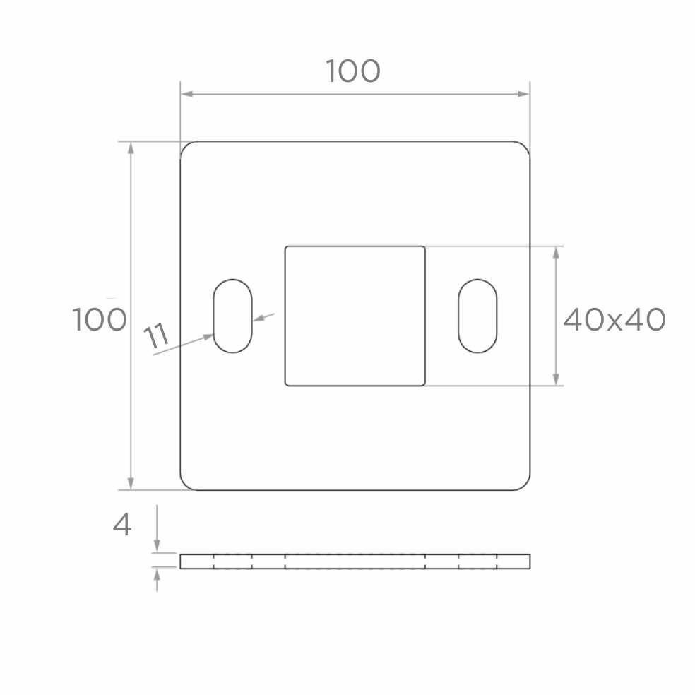 - Centrale opening (voor paal): 40 × 40 mm