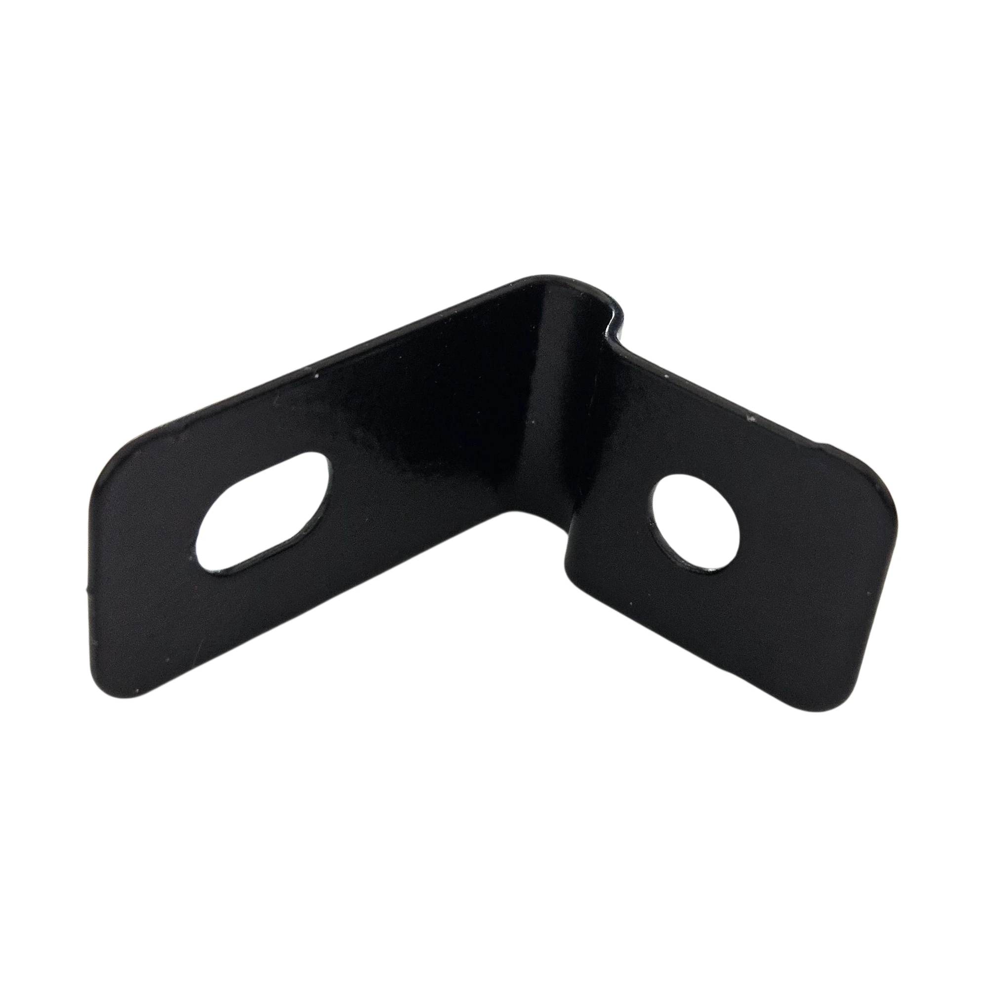 Praktische en duurzame klem, houder, beugel, sluiting 1/2 voor hekpanelen van gegalvaniseerd staal, poedergecoat in zwarte kleur.