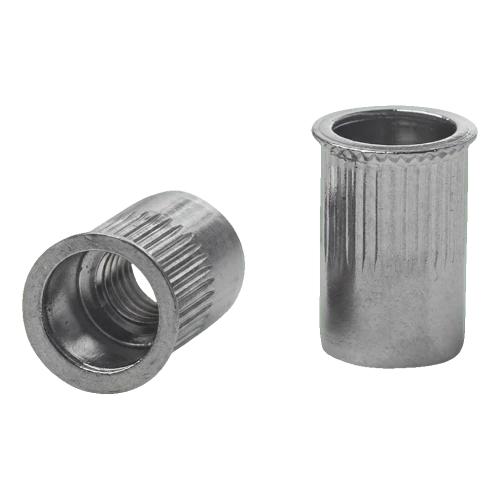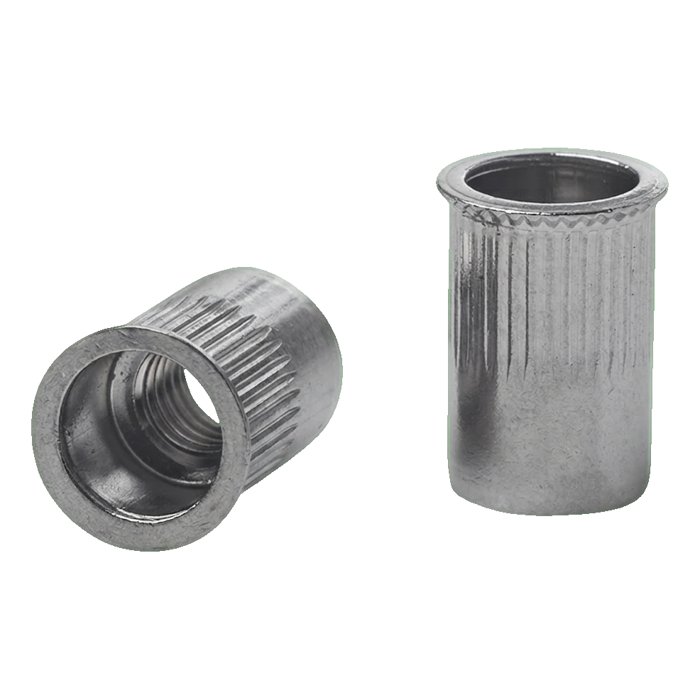 Gereduceerde conische flens met gekartelde schacht zorgt voor een sterke, stabiele en nauwkeurige aansluiting op het te bevestigen element. De karteling voorkomt effectief dat de klinknagel draait in het montagegat, wat zich vertaalt in duurzaamheid en betrouwbaarheid van elke verbinding. De montage is uitzonderlijk snel — een klinknageltang is voldoende om binnen enkele seconden een kant-en-klare draad in het basismateriaal te verkrijgen.