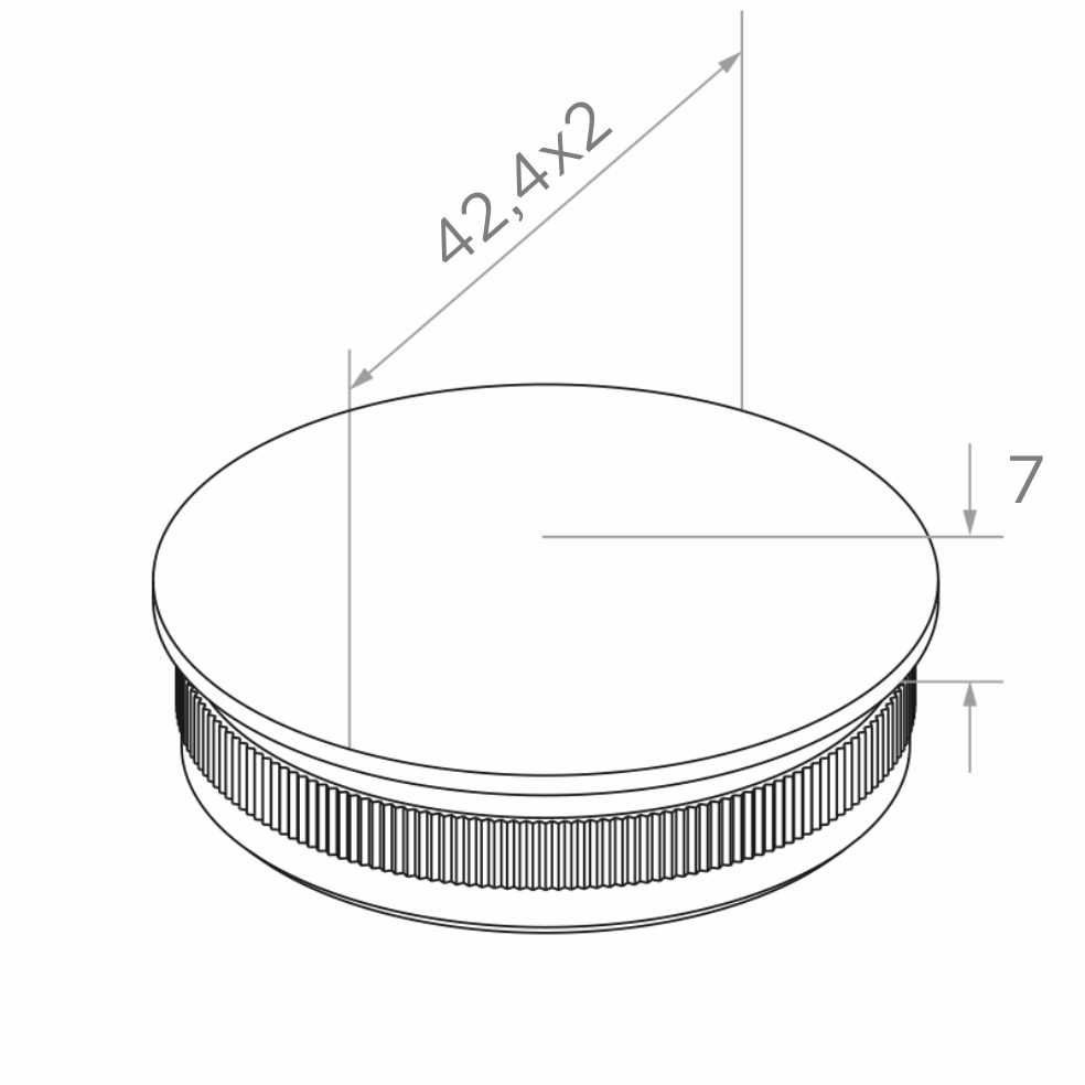 Bolle eindkap indrukbaar voor leuningrail 42,4×2 mm – roestvrij staal AISI 304