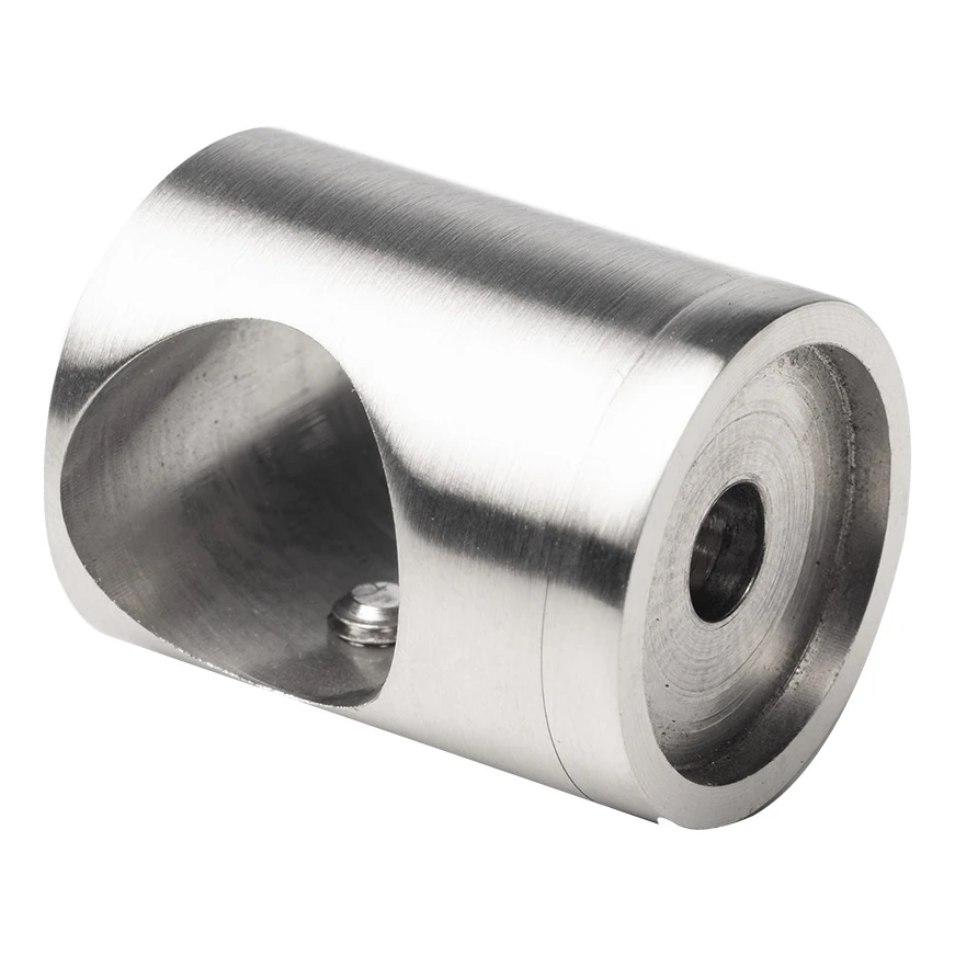 Dankzij de doorvoer constructie gaat de staaf volledig door de beugel heen, wat een stabiele en betrouwbare geleiding van het element garandeert — wat de duurzaamheid van de verbinding aanzienlijk verbetert in vergelijking met klembeugels. De montage gebeurt middels schroefdraad M6 aan het vlakke oppervlak, waardoor het element uitstekend geschikt is voor zowel balustradepaaltjes als bevestiging aan wanden, werkbladen of glazen panelen.