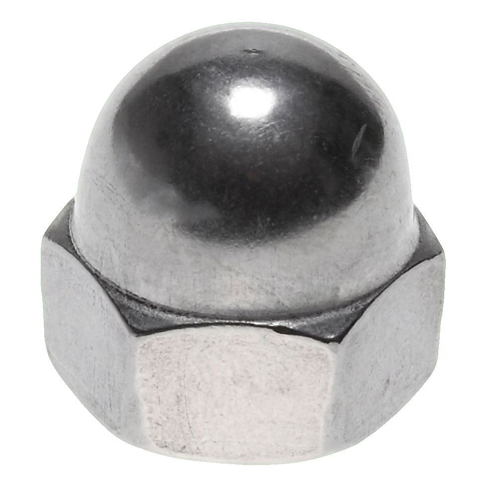 Dopmoer M8 DIN 1587 van roestvrijstaal A2 (AISI 304) is een verbindingselement dat gebruikt wordt voor het esthetisch afdekken van schroefdraadverbindingen. De gesloten, koepelvormige vorm van de moer beschermt de schroefdraad effectief tegen corrosie, verontreinigingen en mechanische beschadigingen, terwijl het de verbinding een nette, decoratieve uitstraling geeft.