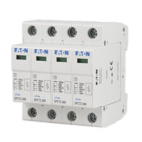 Overspanningsbeveiliging B+C SPBT12-280/1 EATON is een geavanceerd Type 2 (C) beveiligingsapparaat dat is ontworpen om elektrische installaties effectief te beschermen tegen piekspanningen.