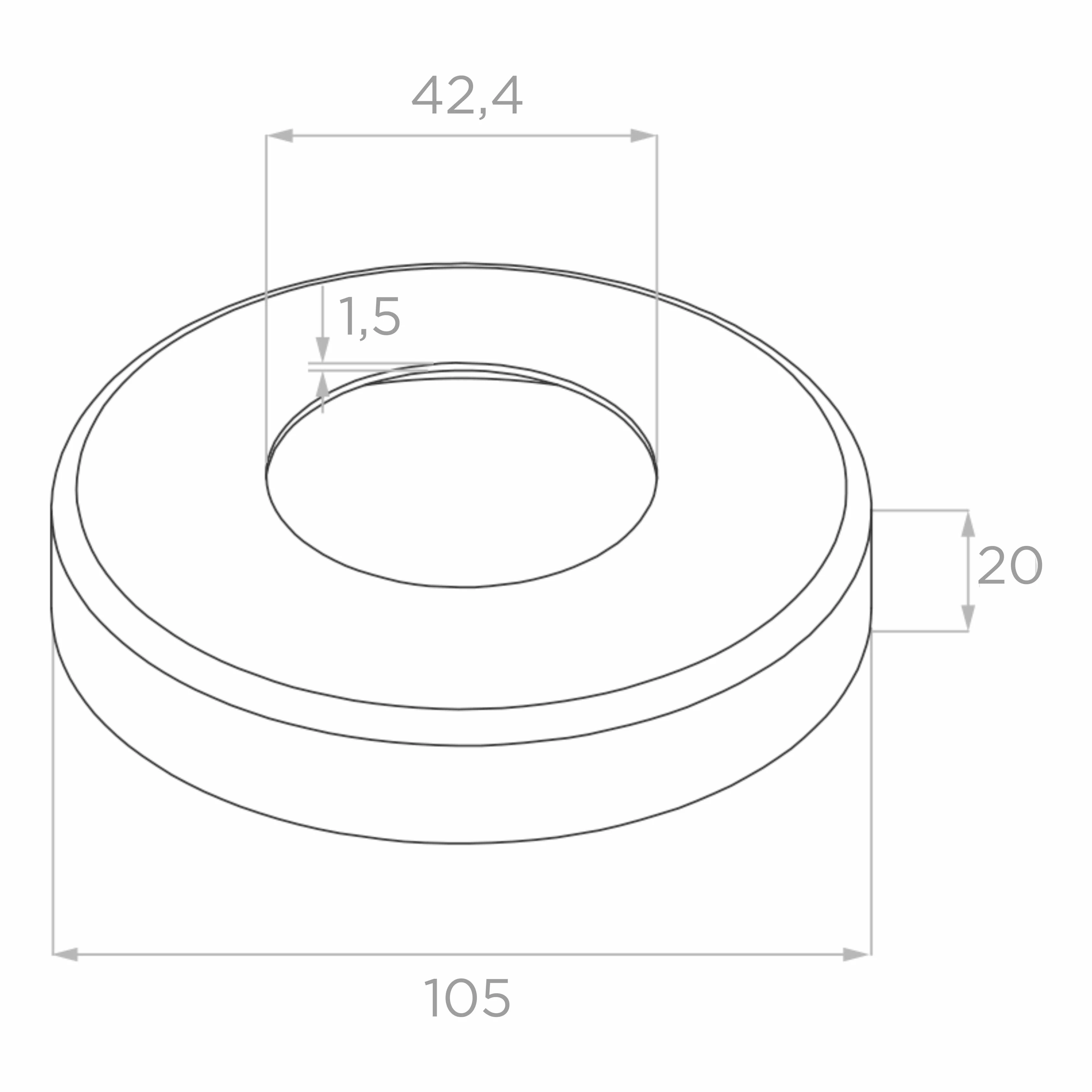 - Sokkelafwerking (rozet) — diameter 105 mm, hoogte 20 mm, gat ø 42,4 mm