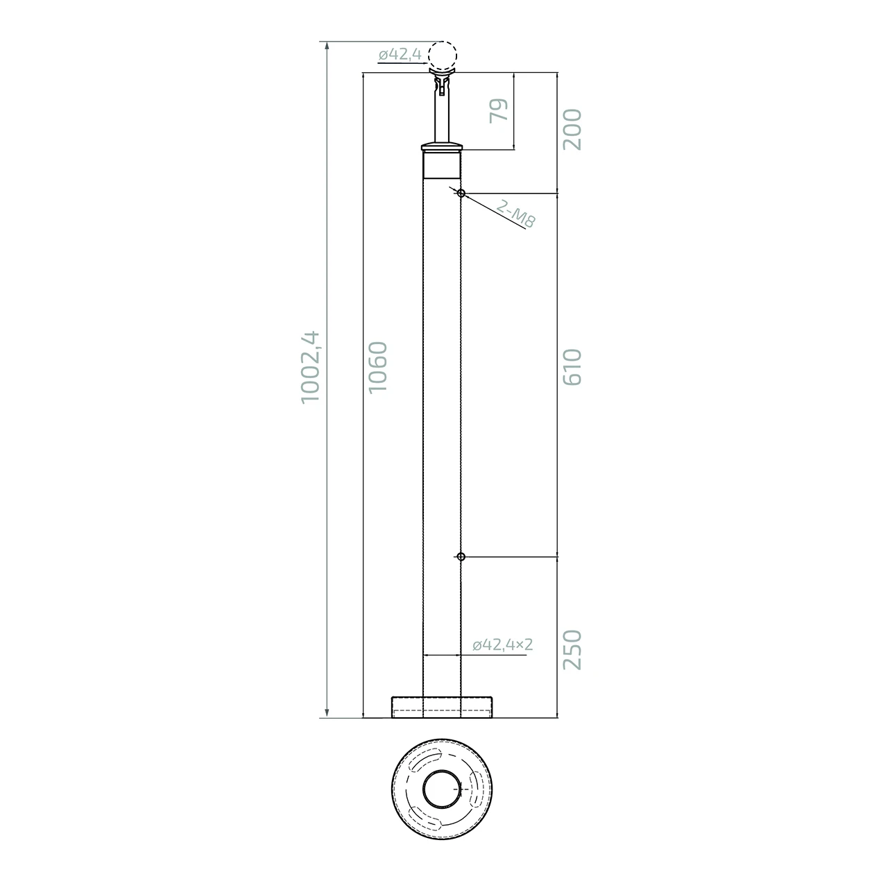 - Paal Ø 42,4 × 2 mm, hoogte 1060 mm