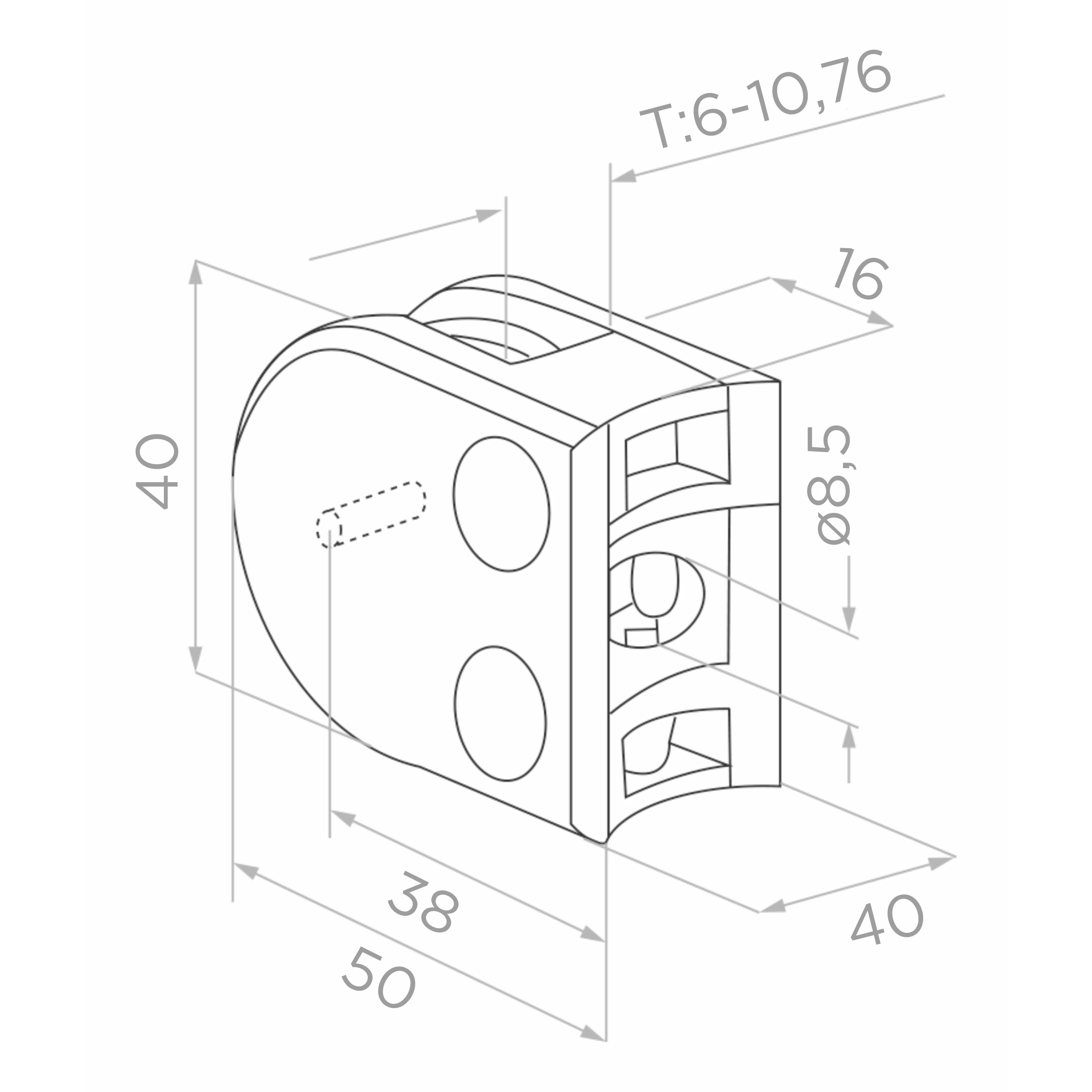 - Glasbereik: 6–10,76 mm (inclusief rubberen afdichtingen voor glas 8 mm)