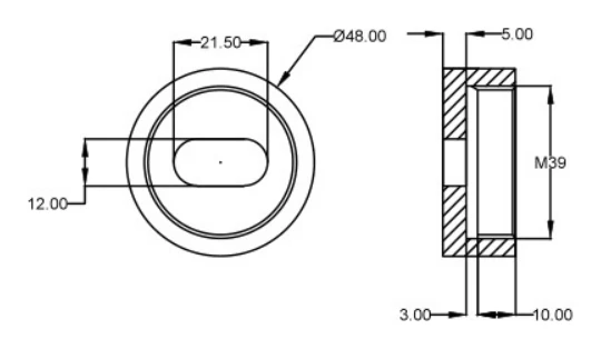 - Diepte cilindrisch deel: 10 mm
