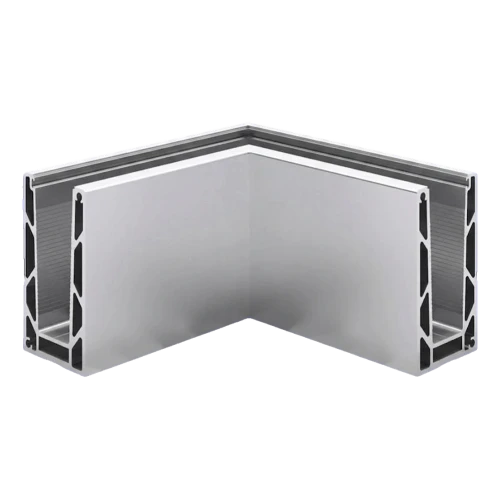 Kozza KE100 – U-profiel buitenhoek 90° voor volledig glazen balustrades, aluminium, matte anodisering