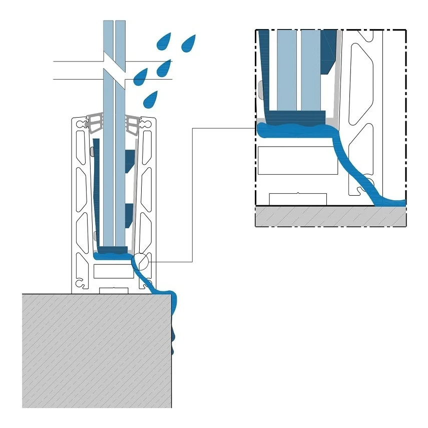 Een van de belangrijkste kenmerken van het KF 1000 profiel is het ingebouwde drainagesysteem. Regenwater dat in het profiel terechtkomt, wordt effectief naar buiten geleid — dit elimineert het probleem van vochtstagnatie, watervlekken en versnelde corrosie. Deze oplossing verlengt de levensduur van de hele balustrade aanzienlijk en vermindert onderhoudskosten, wat vooral cruciaal is bij projecten die blootgesteld zijn aan weersomstandigheden.