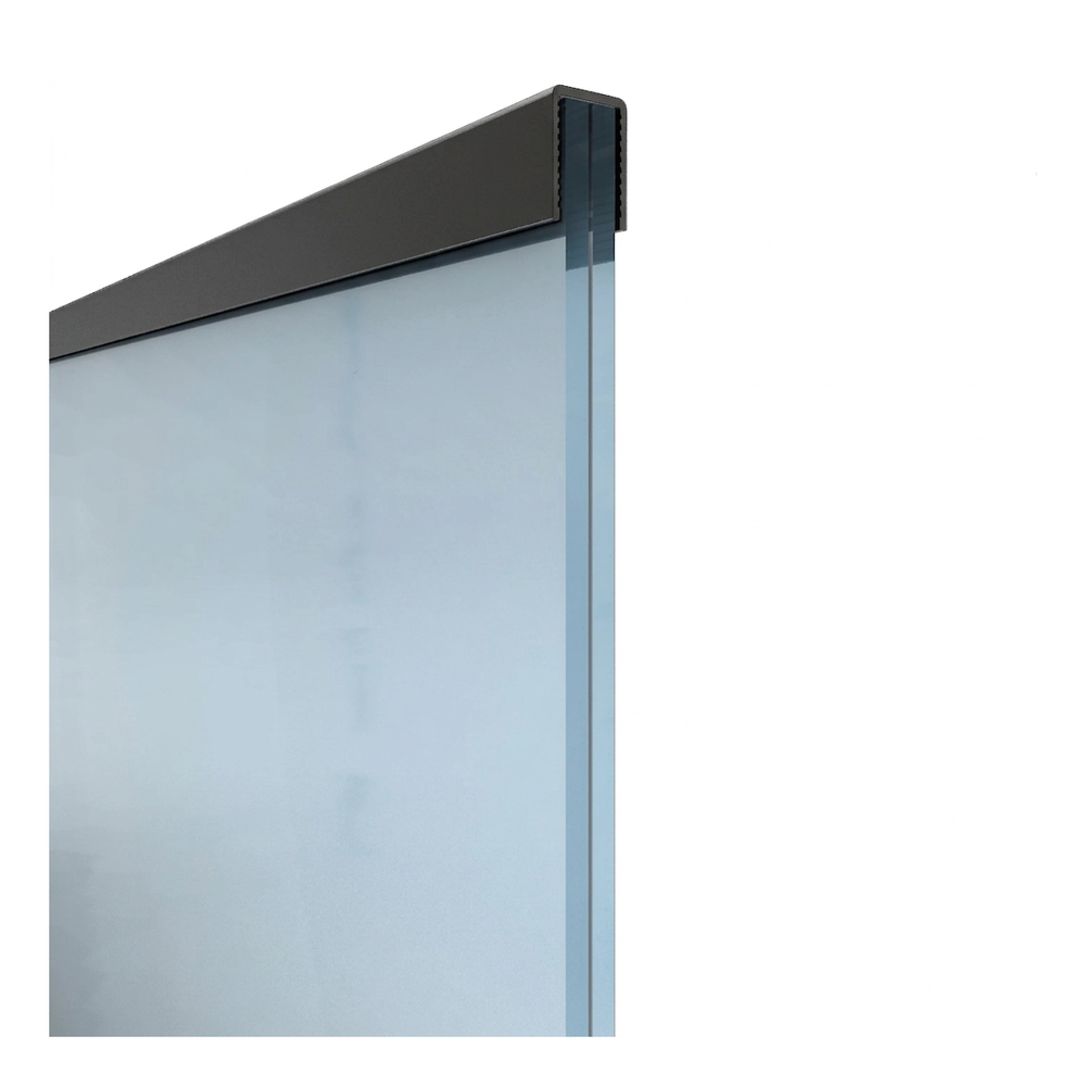 Kozza rechthoekige aluminium handgreep is een professionele afwerking voor volledig glazen balustrades, panelen en glazen scheidingswanden. Het U-vormige profiel wordt over de bovenrand van glas met een dikte van 12–13,52 mm geschoven, wat een esthetische en veilige afwerking van de glasplaat garandeert. Dankzij montage zonder boren en zonder afdichting — uitsluitend met lijm of silicone — is de installatie snel, schoon en elimineert het risico op glasbeschadiging.