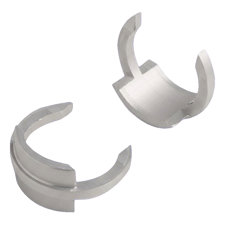 De connector bestaat uit twee aluminium helften die een compact 'nest' vormen dat de glasrand omvat en de leuning van binnenuit ondersteunt. Hierdoor worden belastingen van de leuning gelijkmatig overgebracht naar het glas en microbewegingen tijdens handdruk geëlimineerd — de balustrade geeft de indruk van een eensgezinde monoliet.