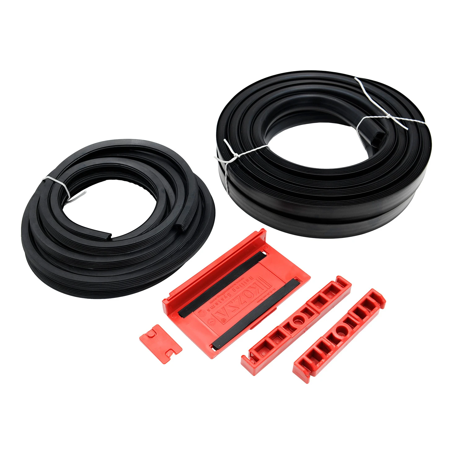 De set omvat 2 rubberen afdichtingen met een lengte van elk 2500 mm — bestemd voor montage aan de voor- en achterzijde van de glasplaat. De afdichtingen bieden volledige bescherming van de glaskanten, dempen trillingen en elimineren direct contact tussen het glas en het aluminium profiel. Gemaakt van elastisch materiaal, passen ze nauwkeurig aan de vorm van het profiel aan en garanderen een stabiele, speling vrije bevestiging van het glas over de volledige lengte.