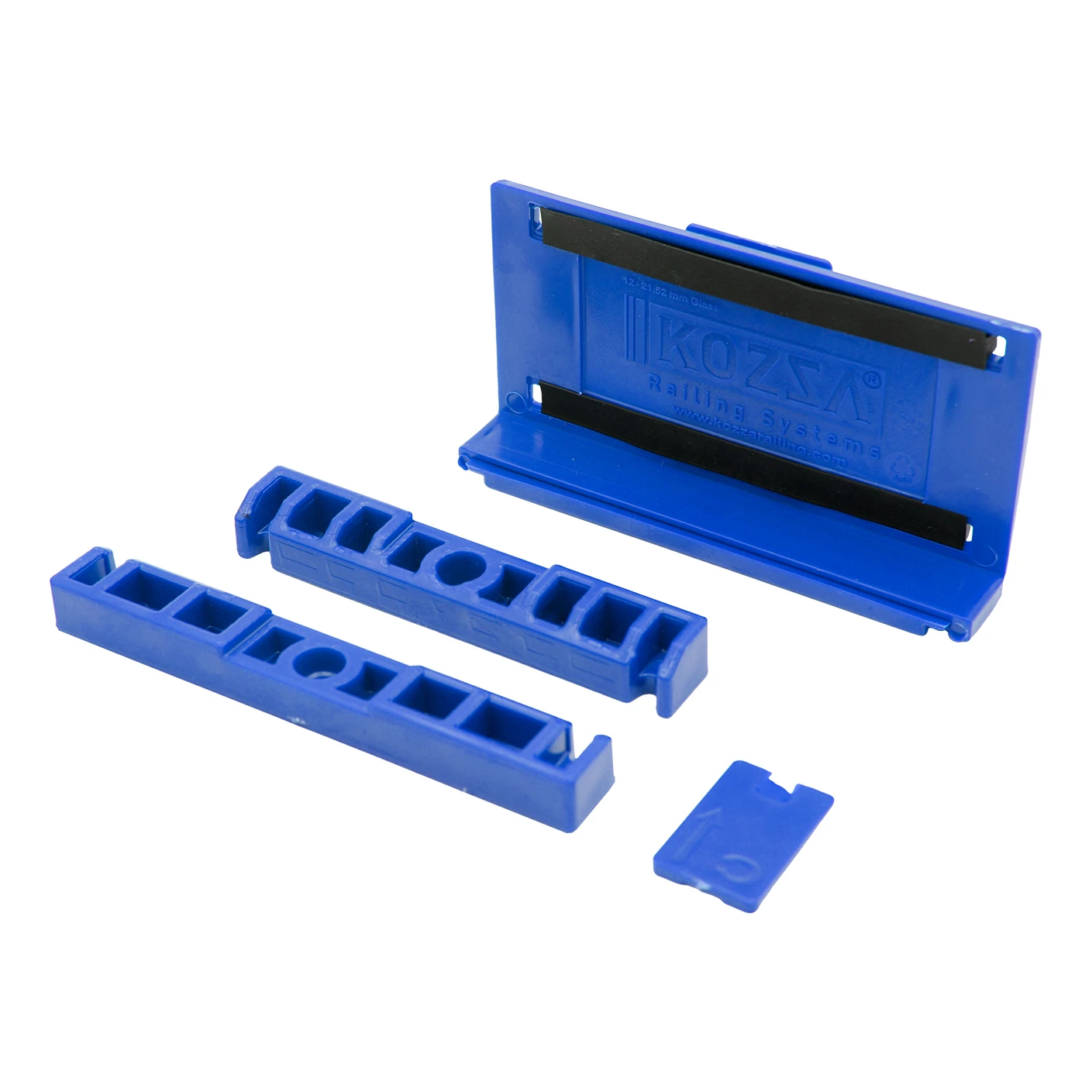 De montageset Glassmove is een complete oplossing voor 2,5 meter lange aluminium U/L-profielen en maakt een stabiele en veilige montage mogelijk van glasplaten met een dikte van 16 tot 17,52 mm. Dankzij de nauwkeurig afgestemde kunststof componenten en rubberen afdichtingen zorgt het systeem voor een betrouwbare bevestiging van het glas in het profiel over de volledige lengte.