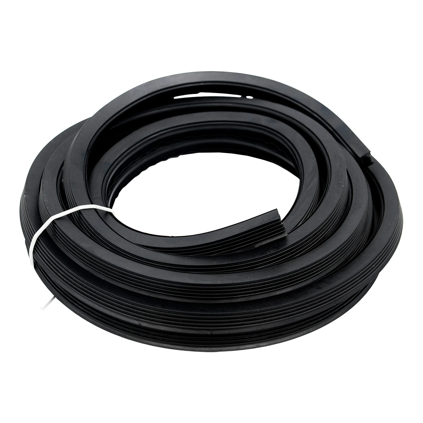Twee zwarte rubberen afdichtingen van elk 2500 mm lang vormen een essentieel onderdeel van de set. De voor- en achterafdichting verschillen in dwarsdoorsnedeprofiel, wat zorgt voor optimale druk en trillingsdemping van het glas over de volledige lengte van het aluminium profiel.