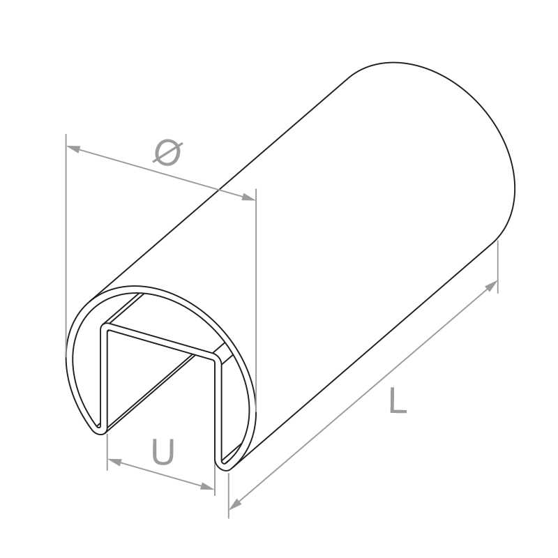 Opzetgrijper voor glas met diameter ø 42,4 mm en lengte 2500 mm — kant-en-klaar afwerkingselement voor volledig glazen balustrades. Bestemd voor montage op glasplaten met dikte van 8 tot 21,52 mm, wat compatibiliteit garandeert met de meeste populaire configuraties van gehard en gelamineerd glas gebruikt in binnen- en buitenbalustrades.