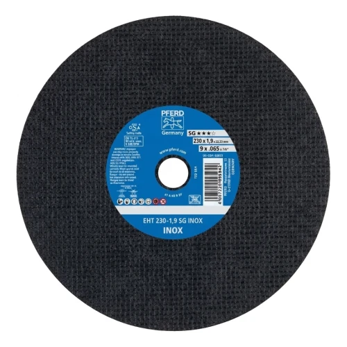 PFERD EHT 230-1,9 SG INOX is een hoogwaardige snijschijf uit de SG (Performance Line) lijn, ontworpen voor het precies snijden van roestvrij staal (INOX) en koolstofstaal. Dankzij de dikte van slechts 1,9 mm zorgt deze voor smalle, koele sneden — minimaliseert de verhitting van het te bewerken materiaal en beperkt verkleuring, wat cruciaal is bij het werken met roestvrij staal.