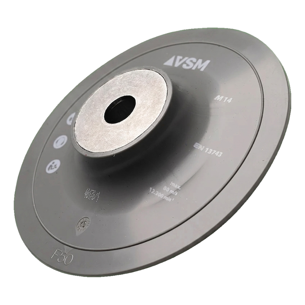 PFERD ZFI TELLER 125 M14 is een professionele steunschijf bestemd voor het bevestigen van fiberschijven met een diameter van 125 mm op haakse slijpers met M14-schroefdraad. De flexibele constructie van de steunschijf zorgt voor gelijkmatige aansluiting van de fiberschijf op het te bewerken oppervlak, wat resulteert in een hogere slijpkwaliteit, langere levensduur van het schuurmiddel en minder vermoeidheid van de gebruiker.