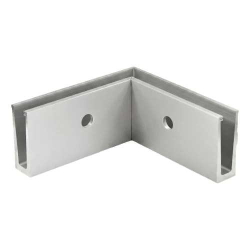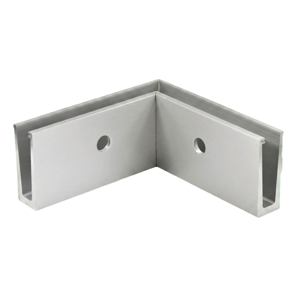 Aluminium binnenhoek profiel voor glazen balustrades (zonder stijlen) met zijmontage. Maakt esthetische hoekafwerking 90° mogelijk bij inbouw van gehard of gelameleerd glas. Dankzij het vlakke systeem en ruwe aluminium oppervlak imiteert het profiel perfect het uiterlijk van geborsteld roestvrij staal, terwijl het lichter en gemakkelijker te bewerken blijft.