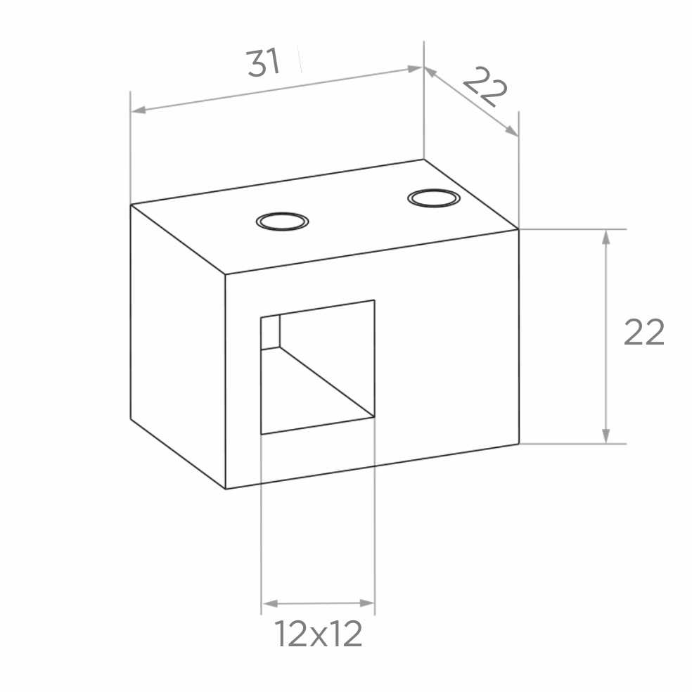- Buitenafmetingen: 31×22×22 mm (breedte × diepte × hoogte)