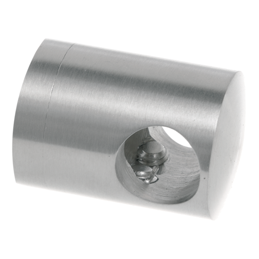 Doorvoerbeugel voor staaf of buis met diameter Ø 12 mm, bestemd voor montage op vlakke oppervlakken. Dankzij de compacte, cilindrische constructie van roestvrij staal AISI 304 met satijnen afwerking past het element perfect bij moderne balustrade- en glas-metaal vullingssystemen. De beugel zorgt voor stabiliteit en vereiste stijfheid van de gehele constructie — de staaf gaat dwars door de behuizing, wat een veilige en duurzame verbinding garandeert.