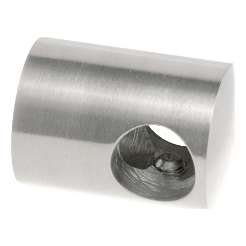 De houder heeft de vorm van een cilindrische behuizing met doorvoergat, waardoor de staaf of buis loopt. Bevestiging aan het vlak gebeurt van onderaf door middel van een montagegat. Twee zijschroeven maken een veilige vergrendeling van de staaf in de houder mogelijk. Door de compacte afmetingen integreert het element discreet met het moderne design van roestvrijstalen balustraden.