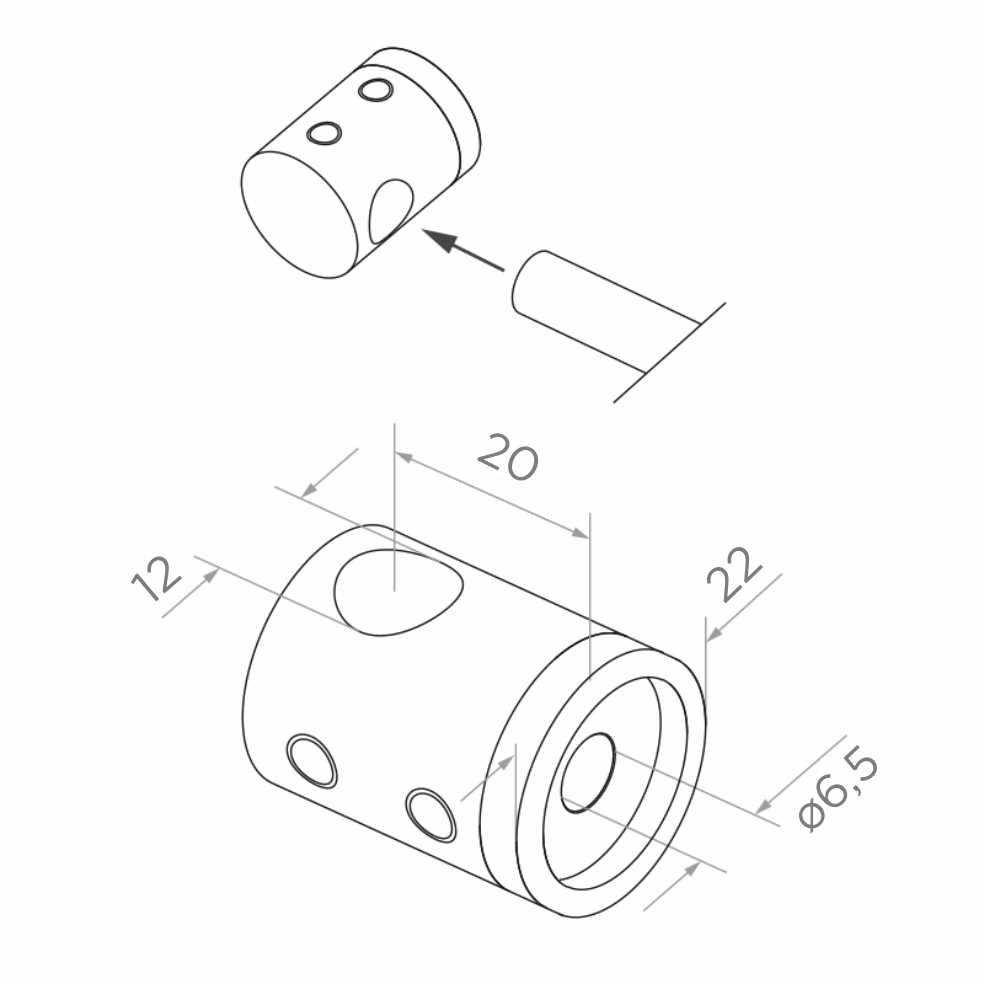 De beugel is bestemd voor platte systemen — montage wordt uitgevoerd op het platte oppervlak van de paal, waardoor het element een esthetische en stabiele afwerking van de staafvulling vormt. De compacte, cilindrische vorm van de beugel maakt snelle montage mogelijk en minimaliseert de werktijd op de bouwplaats.