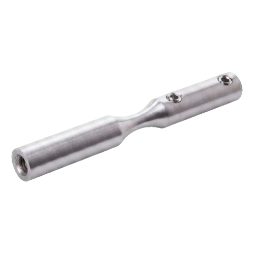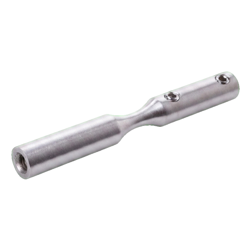 Het element gemaakt van roestvast staal AISI 304 in satijn afwerking zorgt voor hoge corrosieweerstand en een esthetisch, gedempte uitstraling. Montage gebeurt door inschroeven — de beugel is voorzien van M6 schroefdraad en blokkeergaten (Ø6 mm), wat een stabiele en duurzame verbinding met de kabel en draagconstructie garandeert.