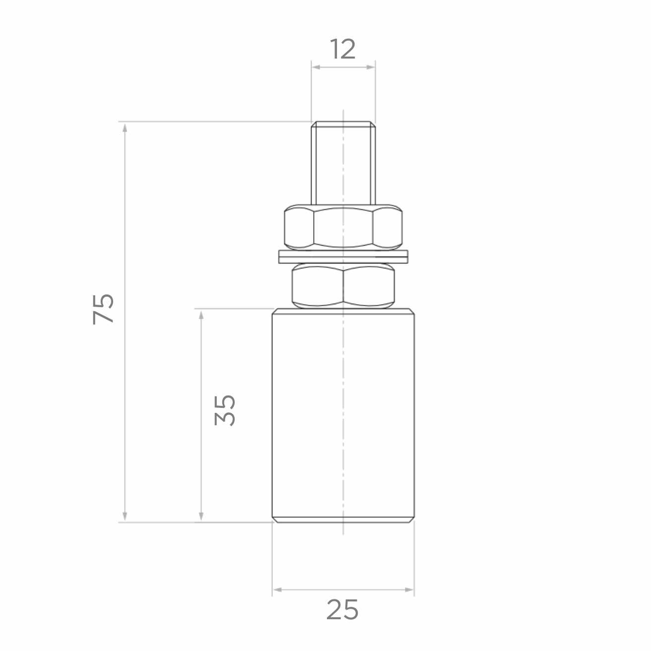 De rol dient voor het geleiden van de C-profiel rail van de schuifpoort, waarbij deze gedurende de hele werkcyclus in verticale positie wordt gehouden. De draadspindel M12 met twee moeren en ring maakt positieregeling van de rol mogelijk evenals betrouwbare bevestiging in de constructie van de paal of poortframe. Kunststof zorgt voor corrosiebestendigheid en weerbestendigheid, waardoor de rol jarenlang volledig functioneel blijft bij buitengebruik — zonder de noodzaak van smering of onderhoud.