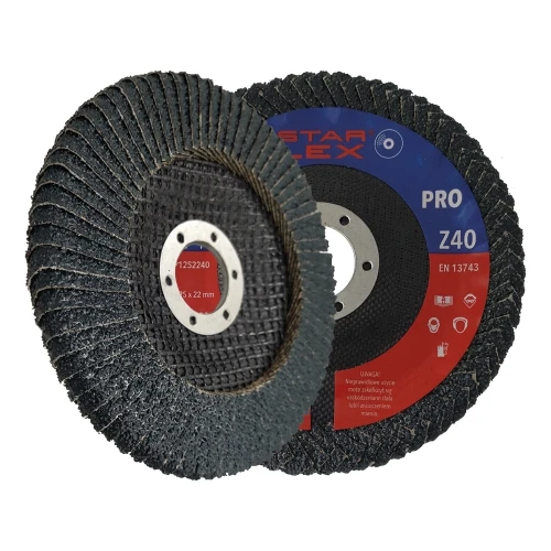 Starflex PRO Z40 is een professionele vlakschuurschijf die speciaal is ontworpen voor snel en nauwkeurig slijpen van hoeklassen. Dankzij de conische constructie van type T27 past de schijf perfect in binnen hoeken en moeilijk toegankelijke plaatsen, waardoor een gladde afwerking van oppervlakken mogelijk is zonder onderslijping van het werkstuk. Het product is geschikt voor zowel zwart staal, als roestvrij staal (INOX) en andere metalen — één gereedschap voor veel materialen op de bouwplaats of in de werkplaats.