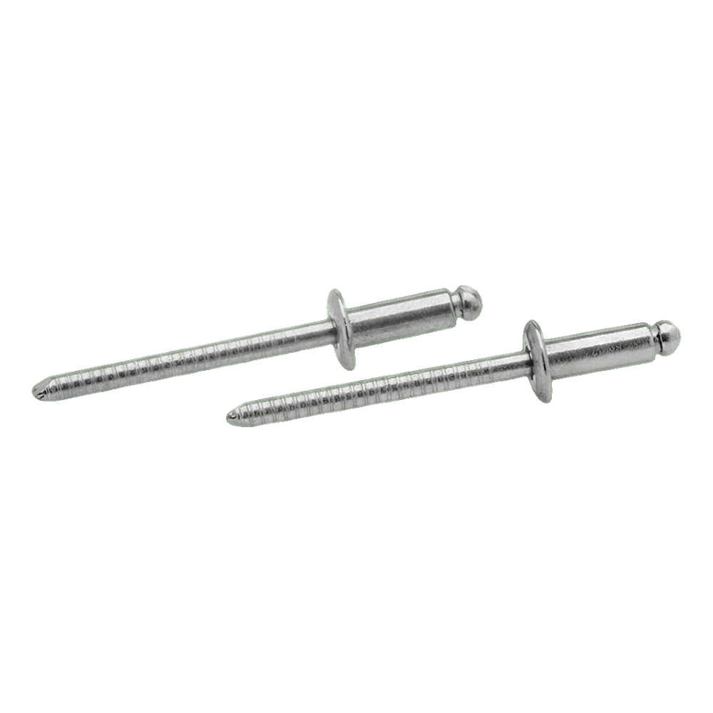 Treknagelklinknagel gegroefd 4×12 mm van roestvrijstaal A2 (AISI 304), uitgevoerd volgens norm DIN 7337. Bestemd voor snelle en duurzame verbinding van metalen elementen — bijzonder bewezen bij montage van balustrades, hekwerken en staalconstructies die blootgesteld zijn aan weersinvloeden.
