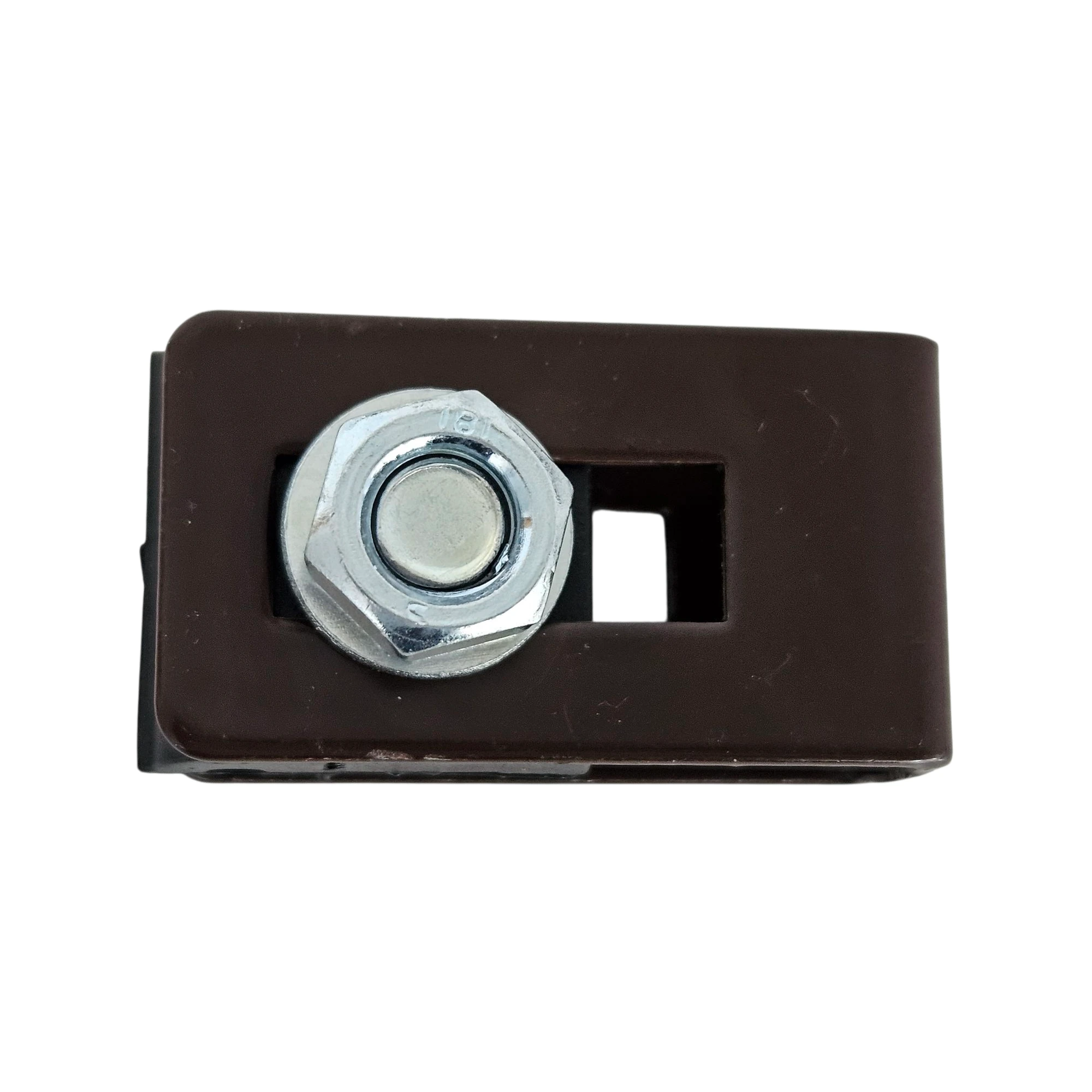 Universele klem bevestigingsbeugel voor hekwerkpanelen bruin geschikt voor palen met verschillende doorsneden dankzij de universele vorm.