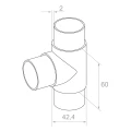 Het T-stuk is gemaakt van roestvrijstaal AISI 304 in satijn afwerking, wat hoge corrosiebestendigheid garandeert evenals een elegante, matte uitstraling die perfect past bij moderne balustraden. Precisie uitvoering en herhaalbare geometrie zorgen ervoor dat het element perfect past bij buizen van het 42,4 mm systeem — een van de meest populaire standaarden in de balustrade industrie.