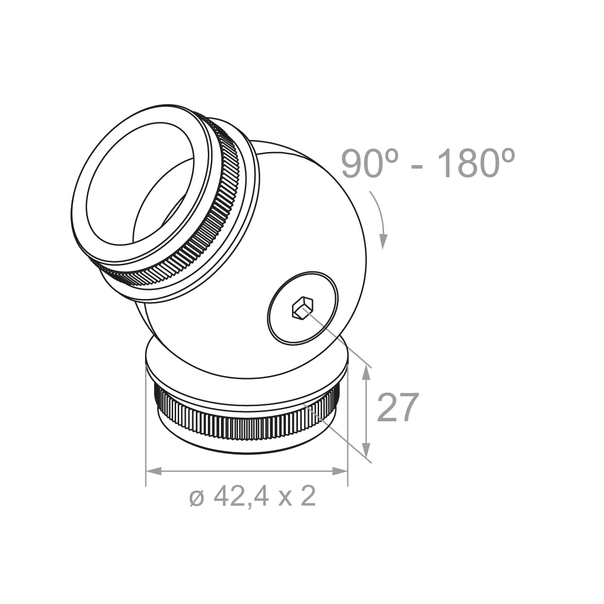 Verstelbare kogelgewrichtsverbinding 90°–180° voor buis ø 42,4 mm – RVS AISI 304 satijn