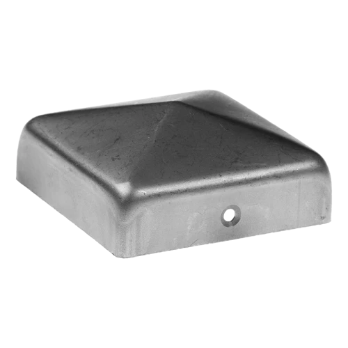 Stalen piramidedakkapje met hoge rand bestemd voor het plaatsen op hekpalen met afmetingen 100×100 mm. Beschermt effectief het bovenste deel van de paal tegen regen, sneeuw en andere weersomstandigheden, waardoor de levensduur aanzienlijk wordt verlengd. Past zowel op metalen als houten palen, wat het een universeel afwerkelement maakt voor elke afrastering.