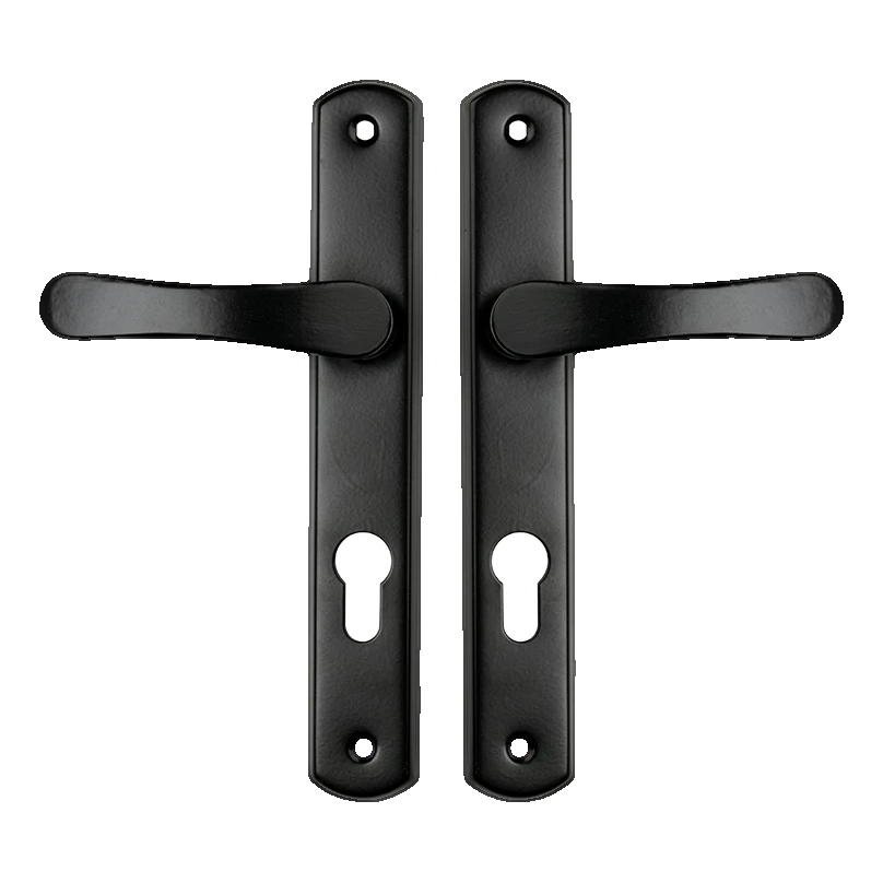 De ergonomische vorm van het schild en de biszkopt-greep garanderen comfort bij dagelijks gebruik. De universele zwarte kleurstelling combineert uitstekend met zwarte, witte en natuurlijke houten deuren, wat brede inrichtingsmogelijkheden biedt bij installaties.