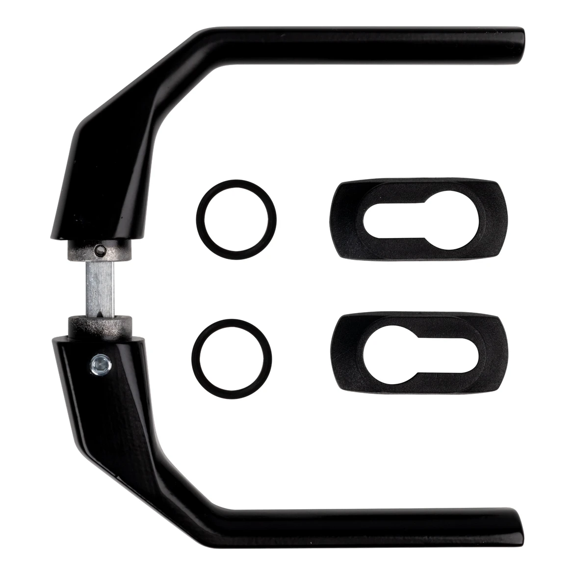 De set wordt montageklaar geleverd – inclusief beide zijden van de kruk, de verbindingsstift en de rozetten, zodat er geen extra onderdelen hoeven te worden aangeschaft. Dit is een praktische oplossing voor installatiebedrijven die hekwerken, poorten en hekdeuren plaatsen, waarmee ze de tijd voor het samenstellen van materialen op de bouwplaats aanzienlijk verkorten.